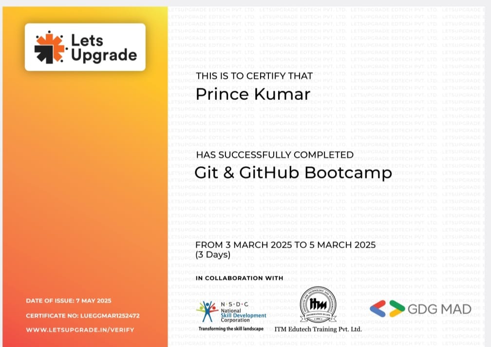 I completed a practical training on Git and GitHub, where I learned how to manage version control efficiently and collaborate on software projects using industry-standard tools...